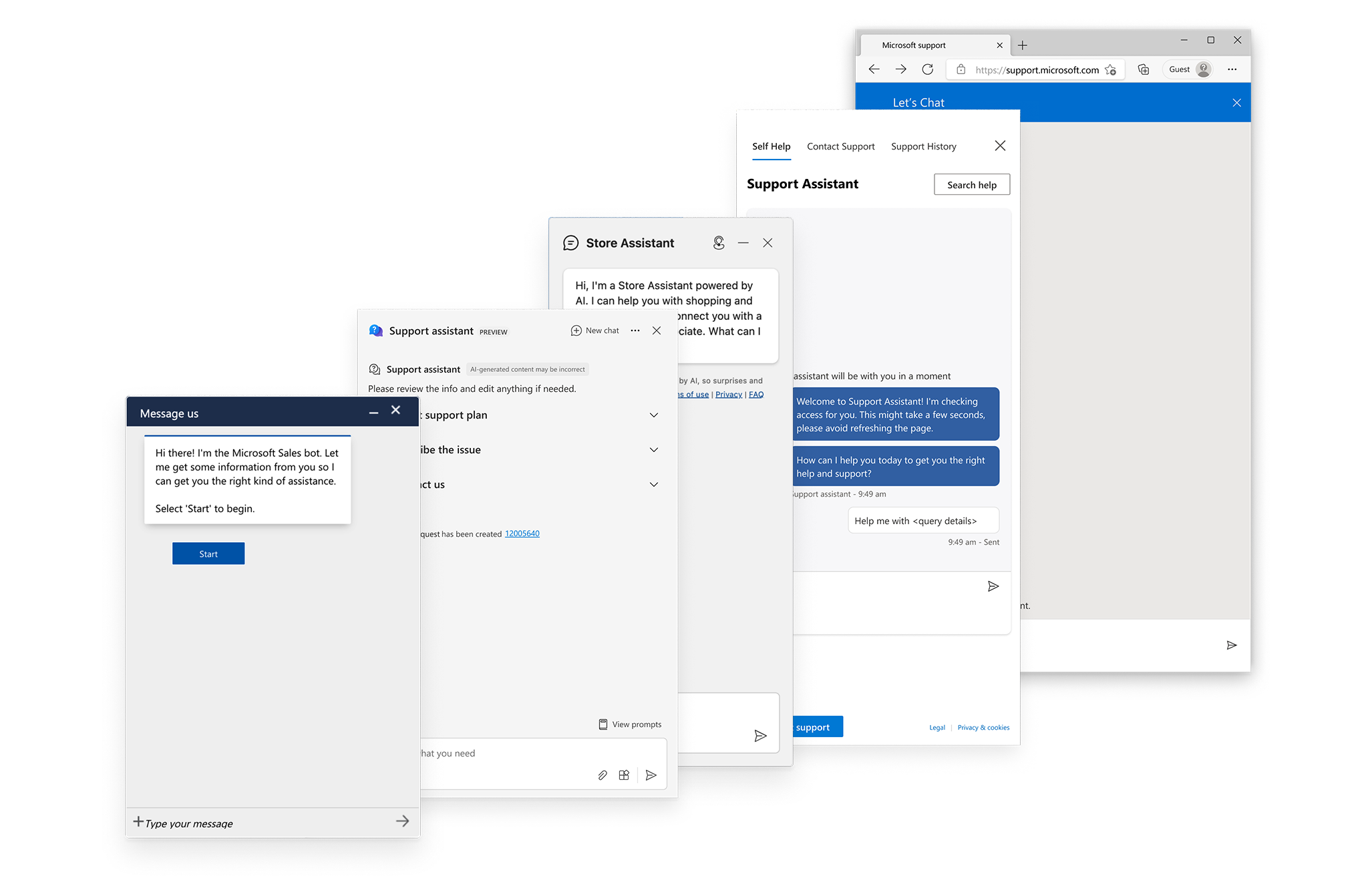 Across the Microsoft Store, there were different chat help options—both AI and human—with various access points. Customers didn’t have a clear, consistent way to get help from marketing pages through purchase to the Microsoft admin center. Especially at sign-up, support was hard to find, and users often couldn’t tell AI help from human help. This caused confusion, delays, mistrust, and lost sign-ups.